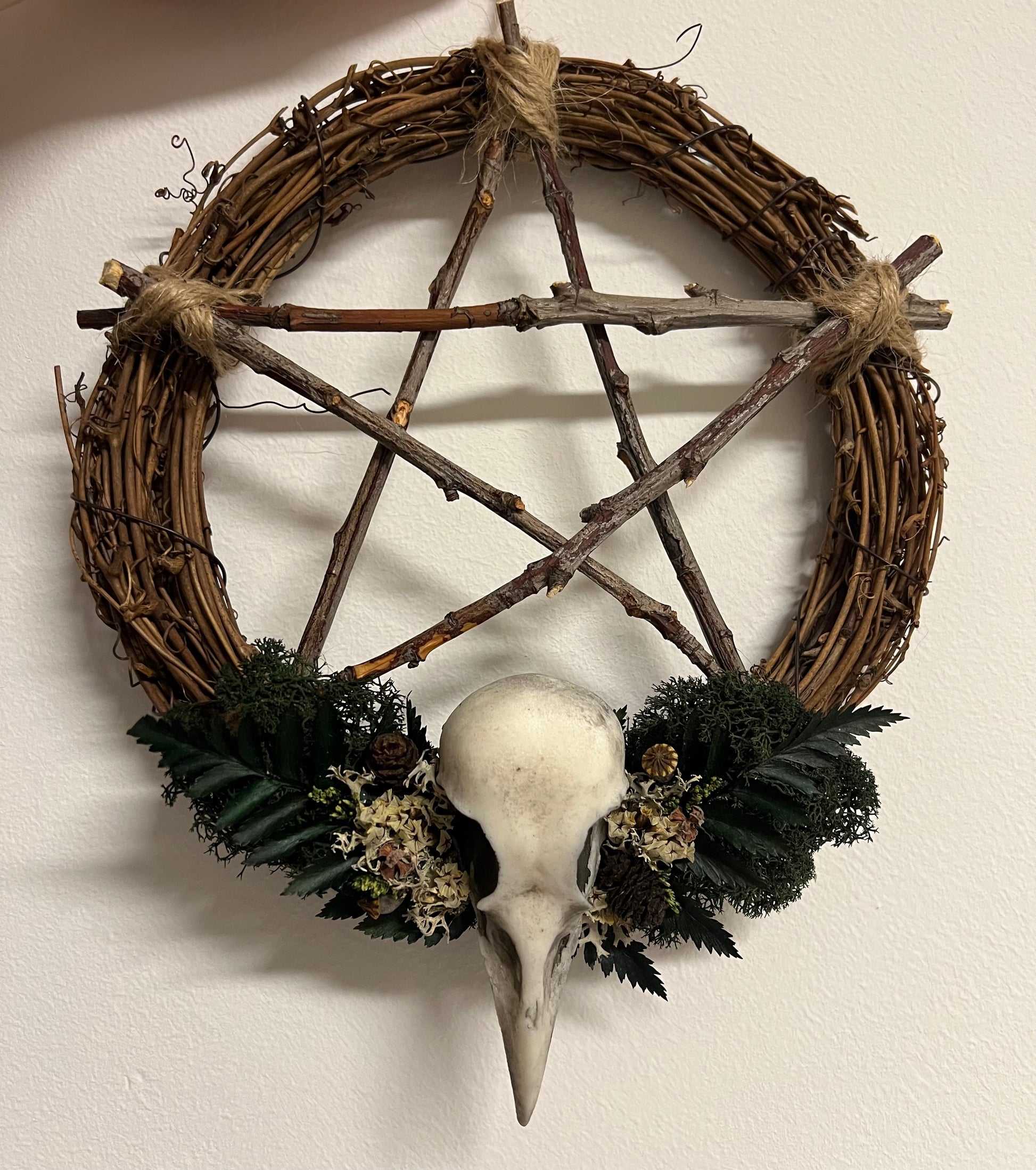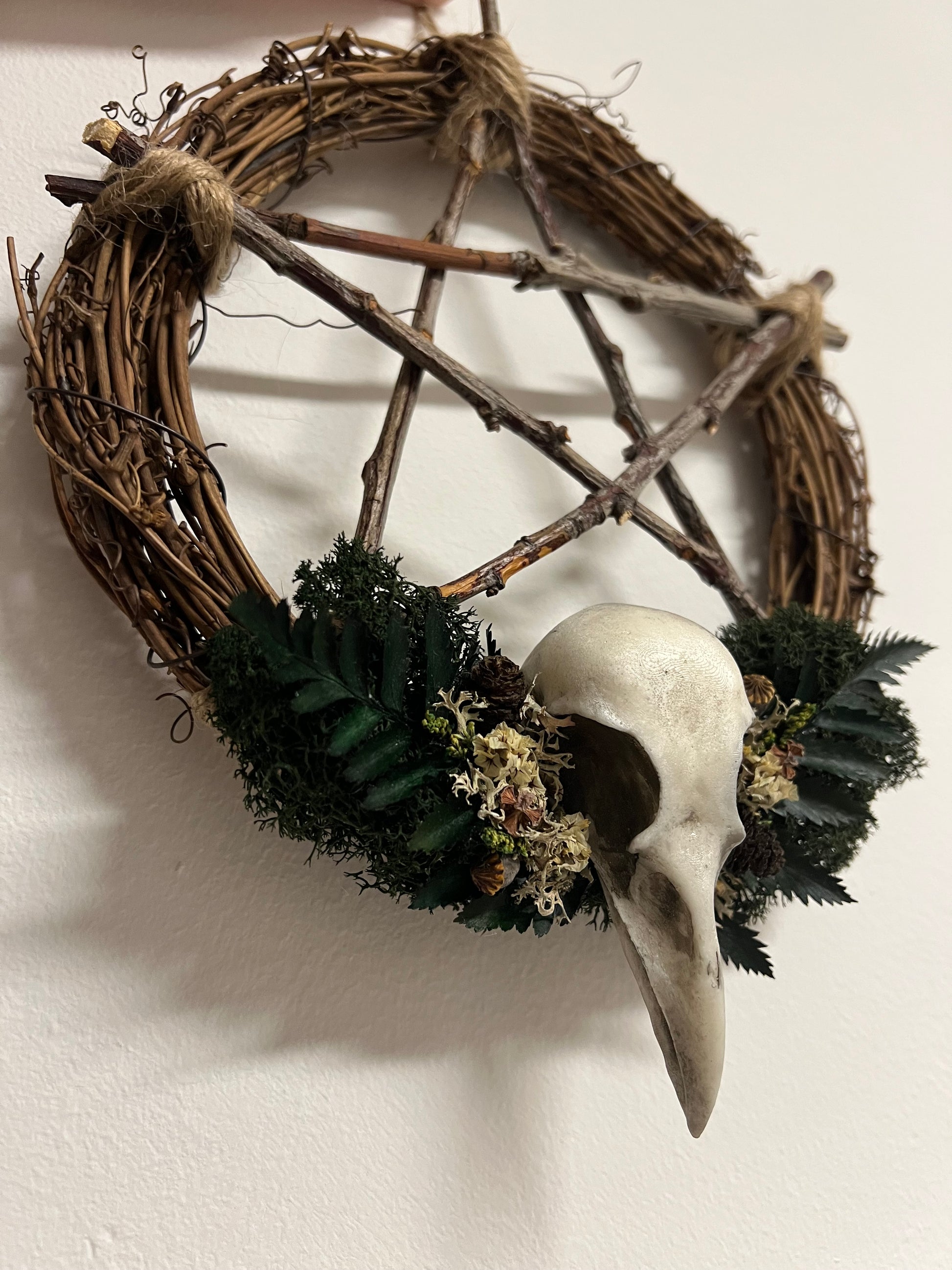 Kranz mit Pentagram und Vogelschädel aus Kunstharz
