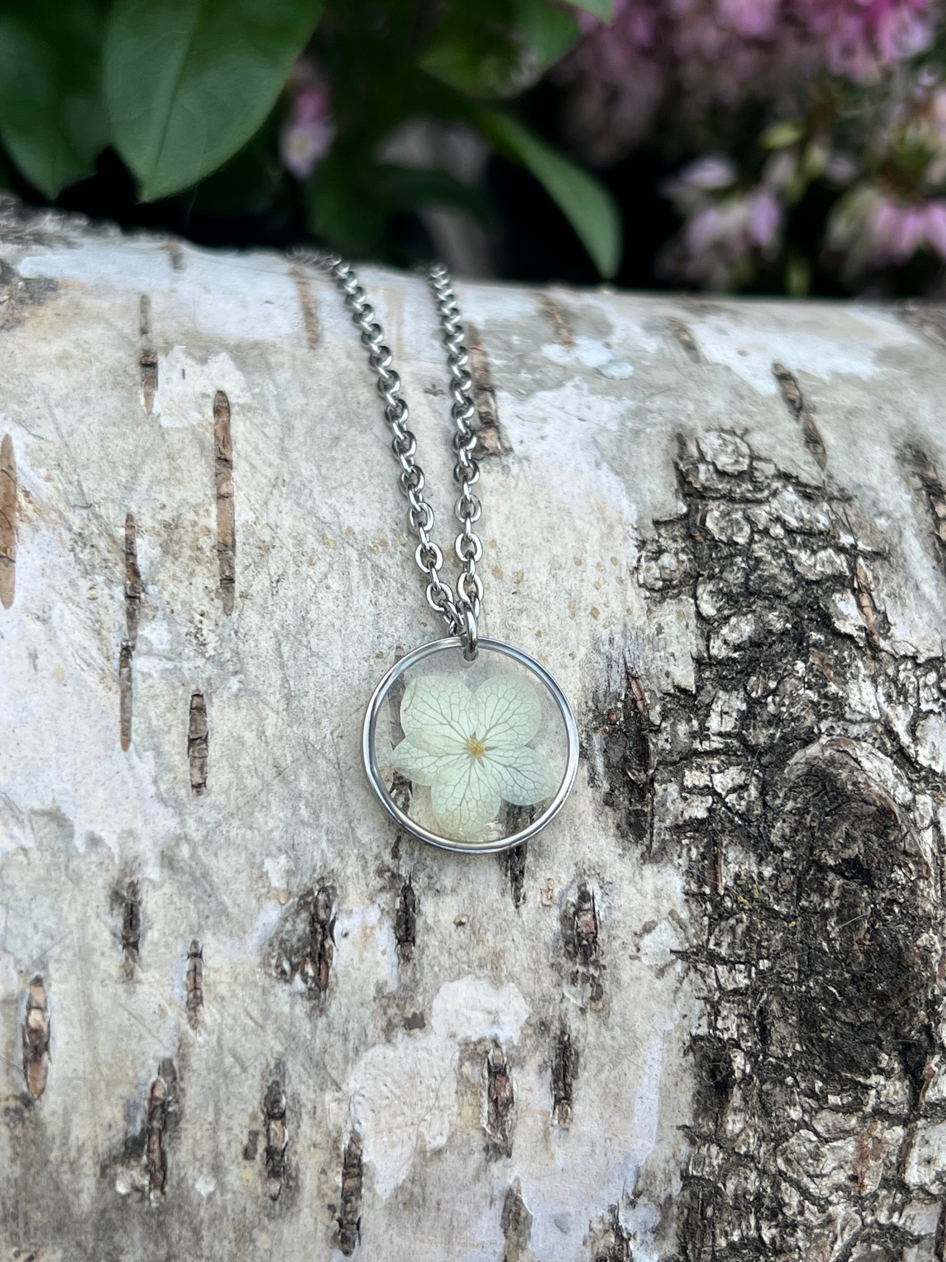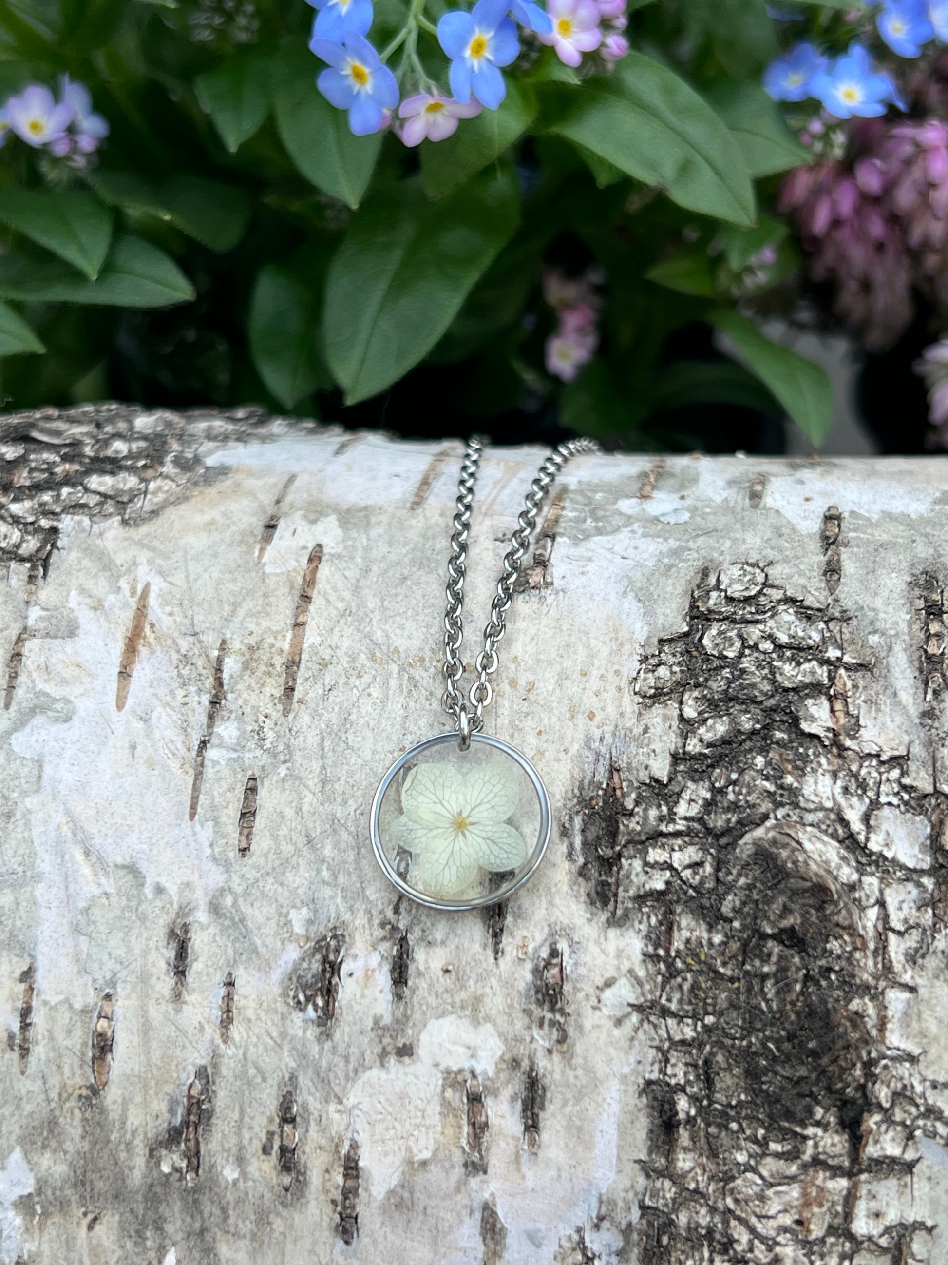Mini Hortensien Halskette Silber